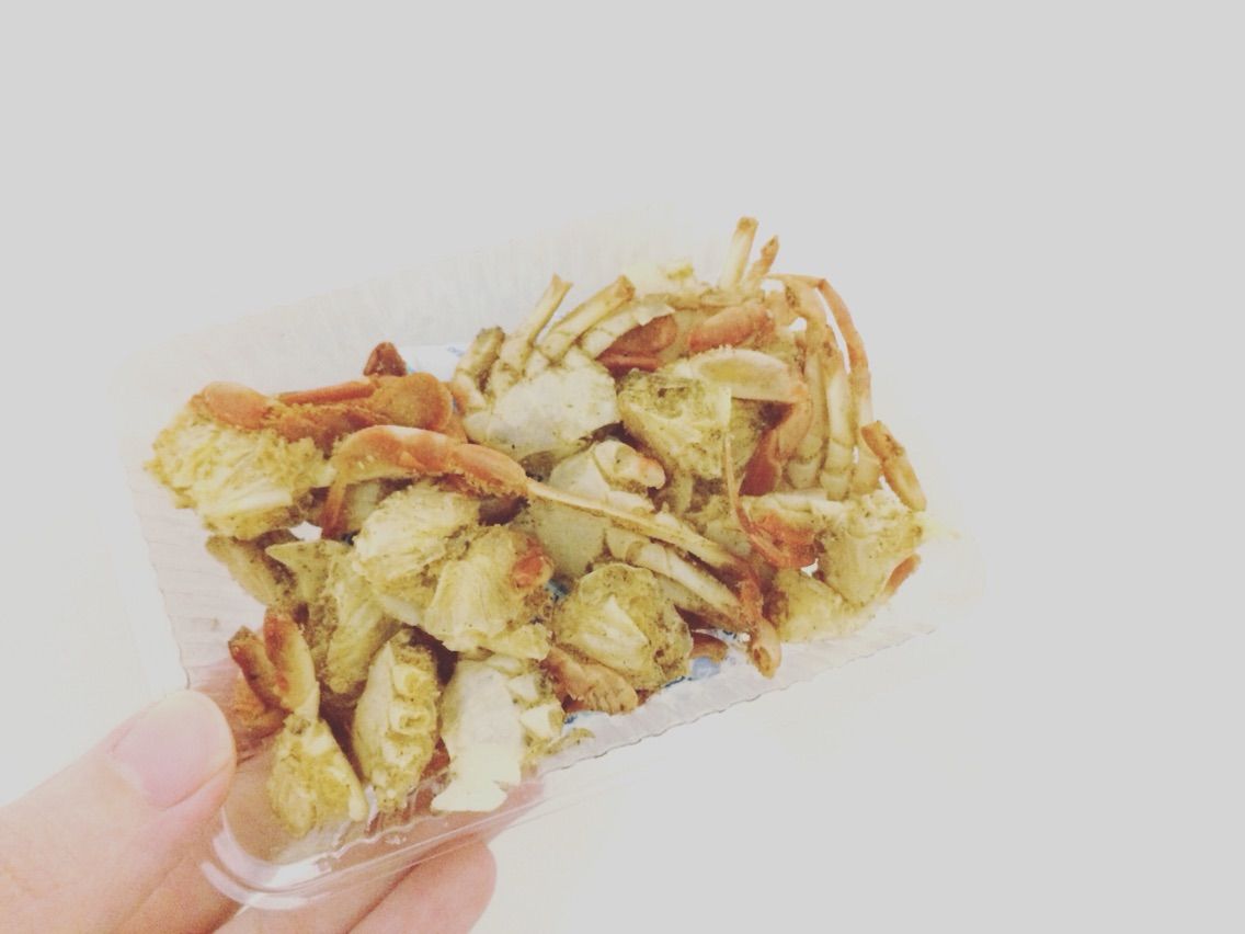 中はこんな感じでひとくちサイズのまるごと蟹がぎっしり。低温で揚げたあと、フリーズドライで油抜きするらしく、ぜんぜん脂っこくありません。さっくさく。塩、胡椒でしっかり味付けしてあって、うれしいことにちょっと味も濃いめ。ビールがとまらない感じになります。