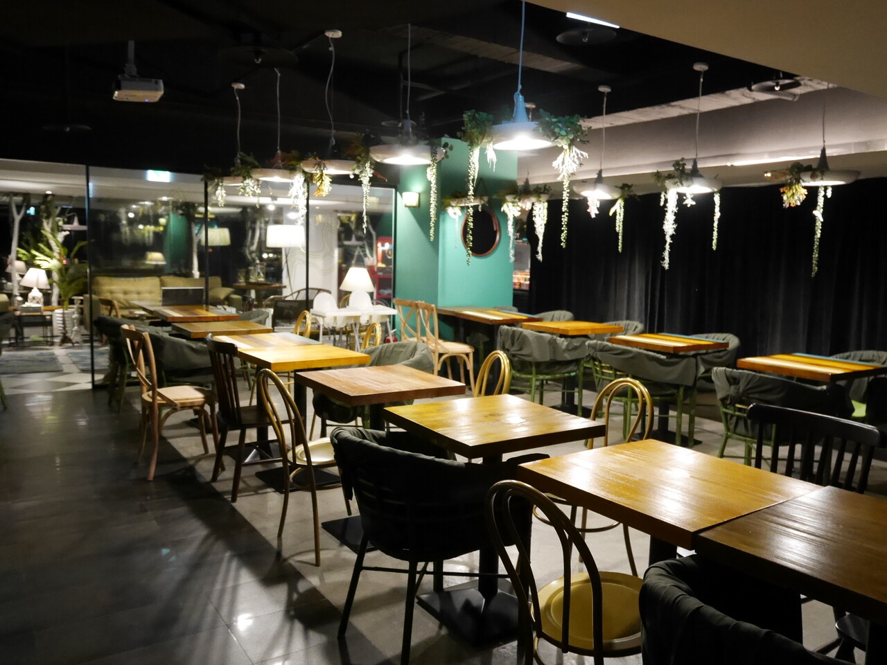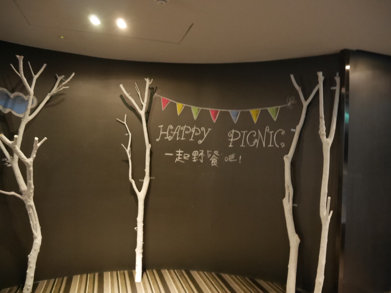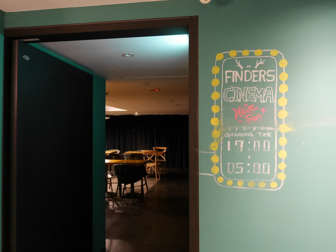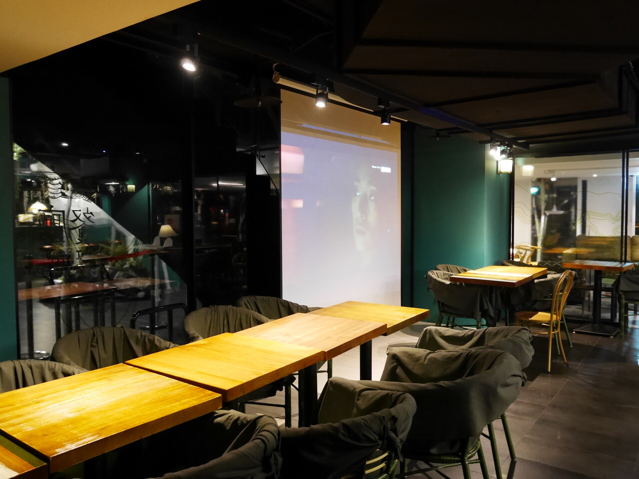 そしてそして、まだお部屋はあって、こちらでは大きなスクリーンが設置されていて、夜17:00~5:00まで映画の上映を行なっているそうです。