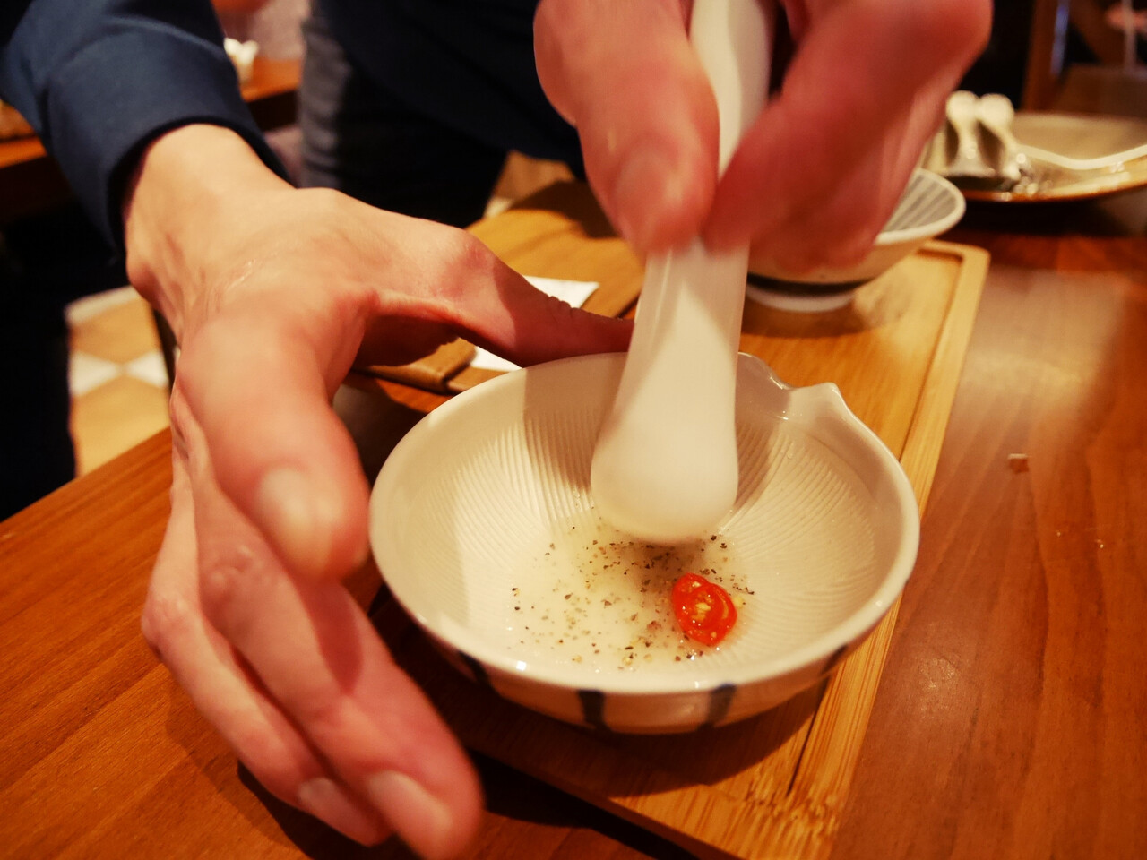 話したい!でもお料理はどんどんやってくる!写真写真!わーおいしい!となんだか慌しかったですが(笑)、店員さんが調味料を調合してくれたり、お水も素敵な感じで、なんだかとても楽しく、満足度が高いお食事でした。
