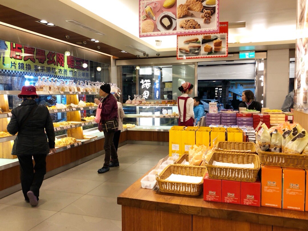 パンにロールケーキに、同じく宜蘭名物の薄焼きパイ「牛舌餅」など店内は美味しそうなお菓子がずらり。街の人気のお菓子屋さんといった感じです。