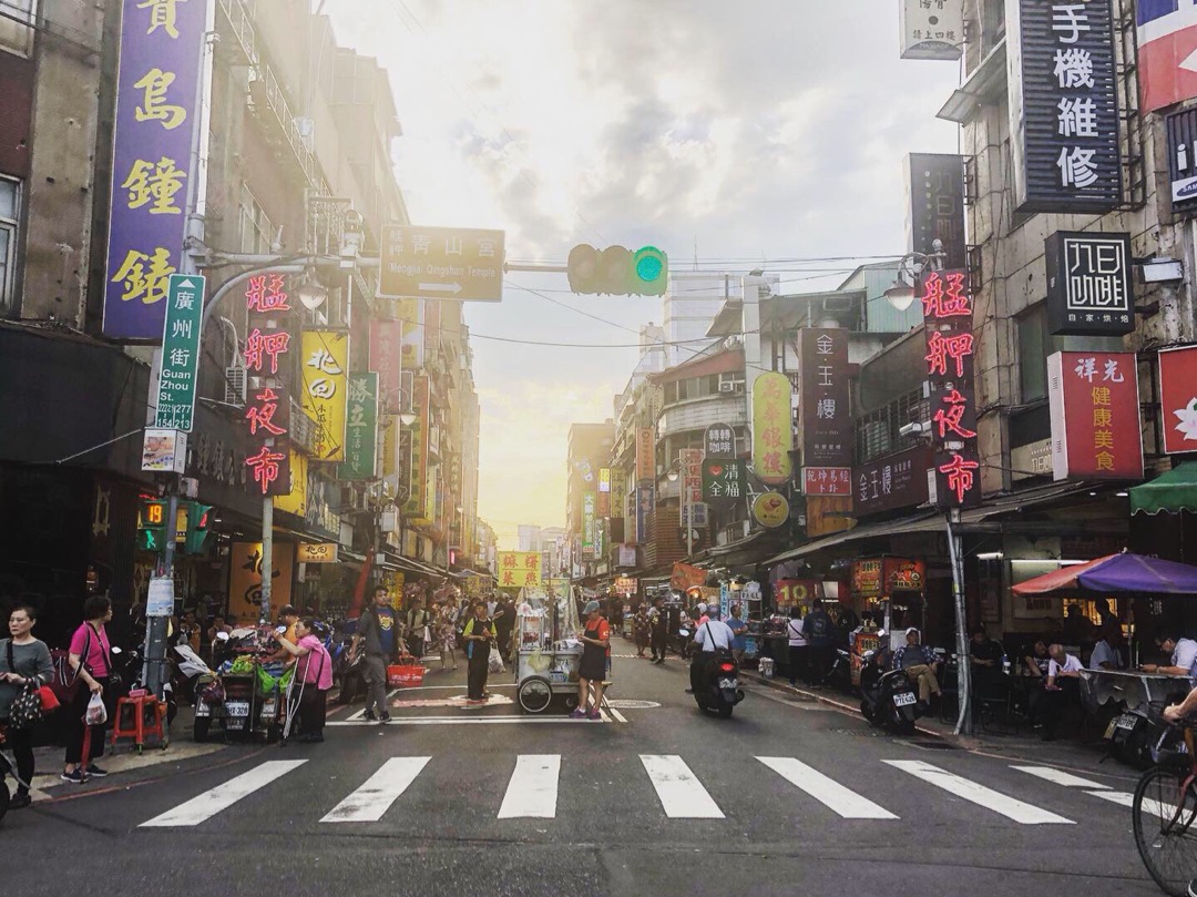 夕方、ちょうど艋舺夜市が店支度を始める時間帯。