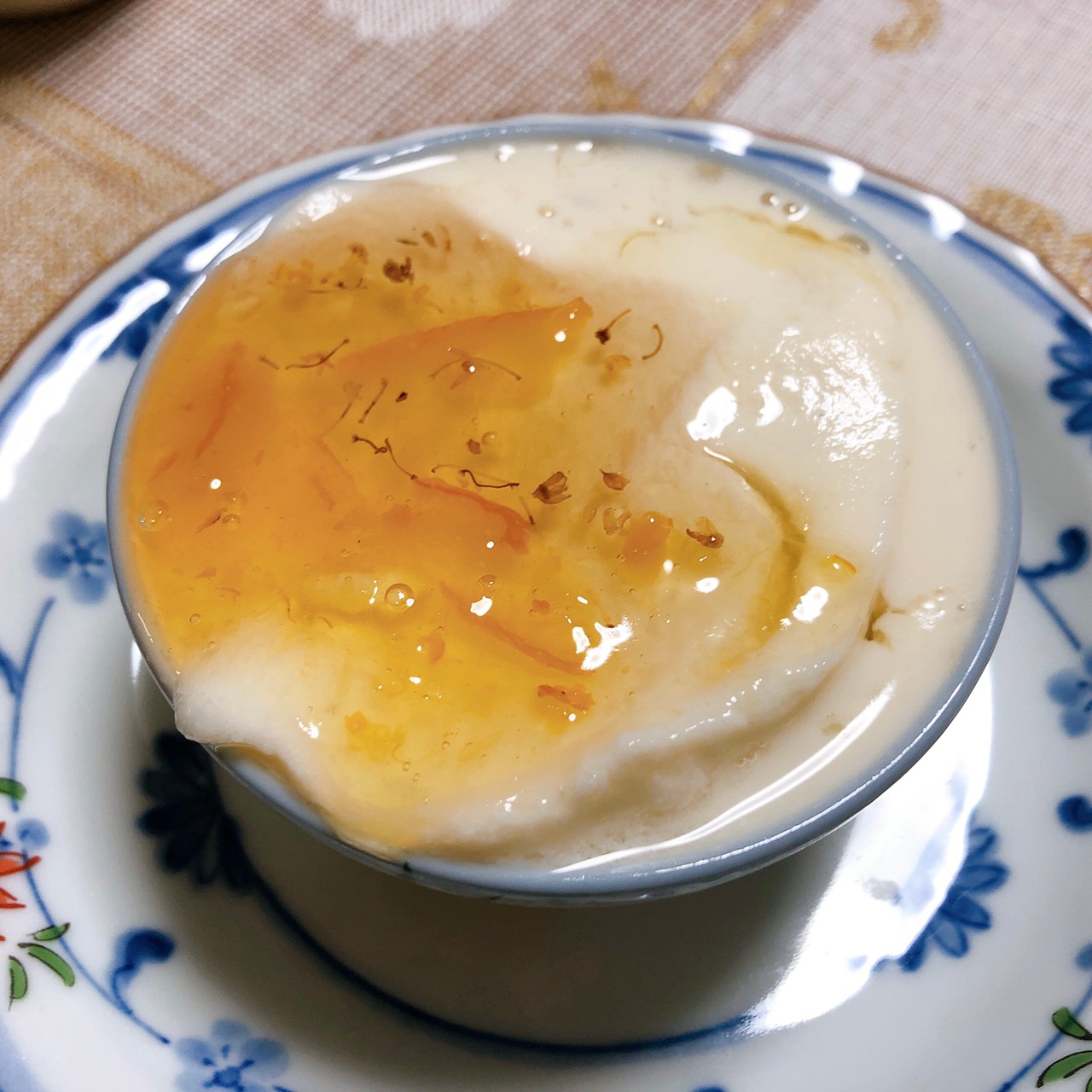 もともと台湾で食べてみたい豆花のひとつに金柑のシロップトッピングの豆花というのがあったのですが(高雄に絶対食べて欲しいとおすすめされているお店があるのです)、それをイメージして冷蔵庫にある柚子茶をそのままのせてみたらすごく美味しかった!