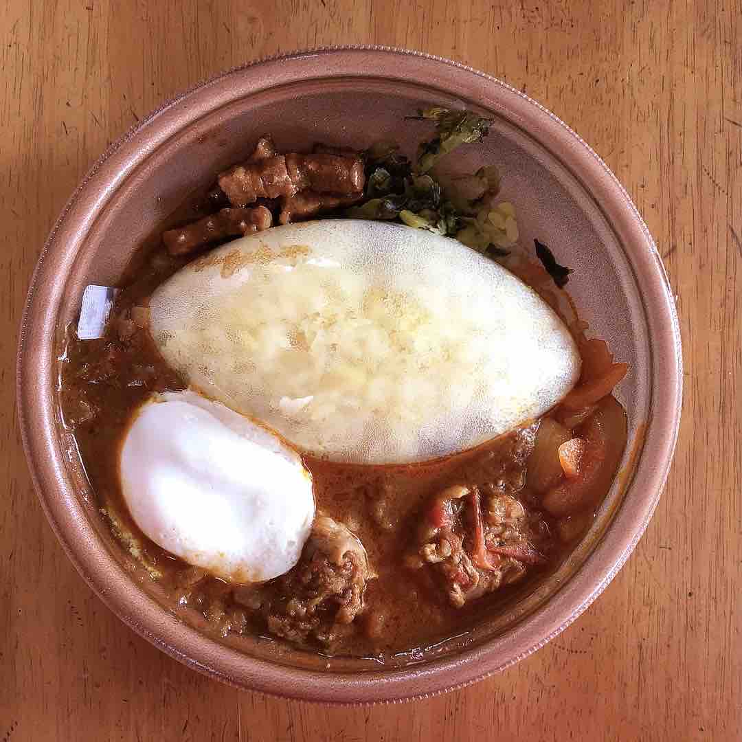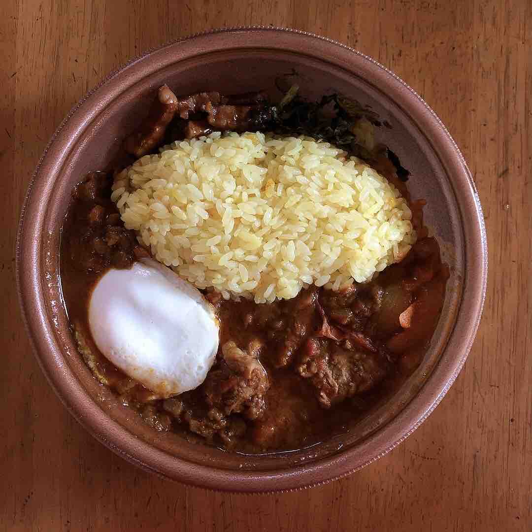 ターメリックライスの上部が魯肉と高菜、下がスパイスカレーです。
