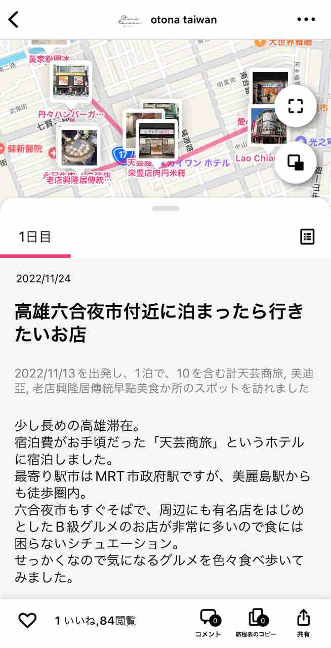 こちららも前回同様、台湾の旅行計画プリ「Funliday(ファンリデー)」の旅ログにオトナタイワン名義で投稿しました。