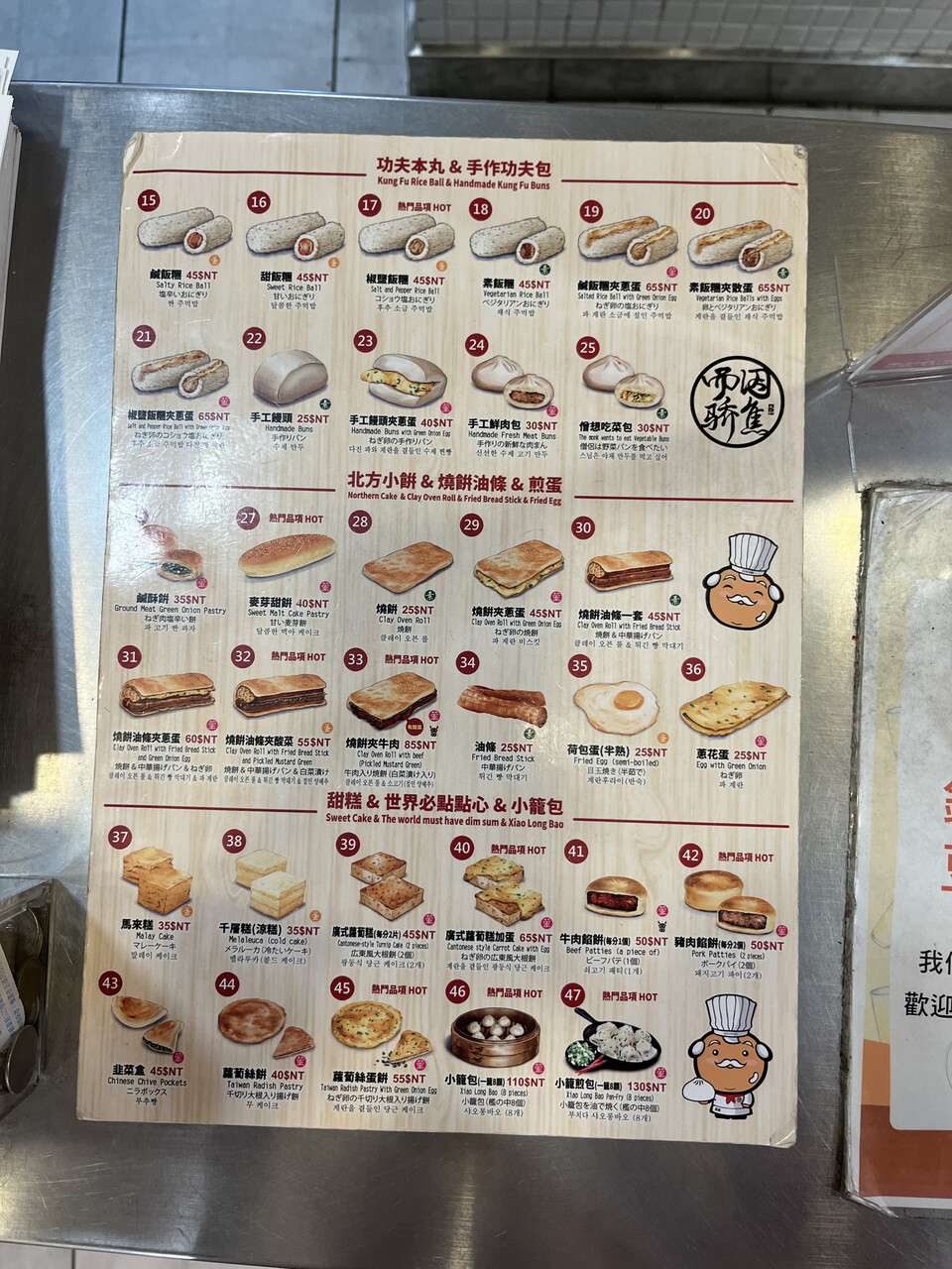 メニューはこんな感じで、レジにあったこのイラスト入りメニューには日本語も併記されていました。