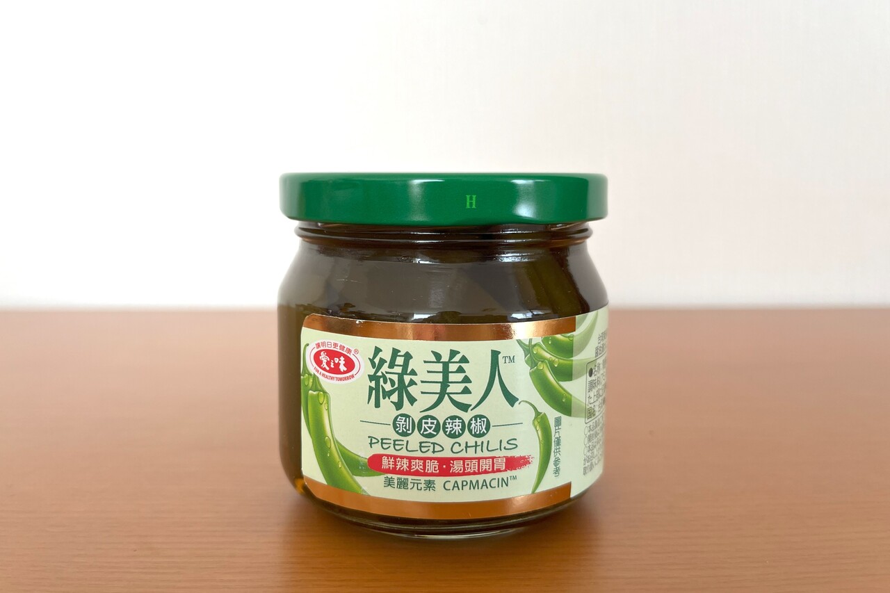 その記憶があったので、剝皮辣椒が気になりながらも自分では買わずにいたのですが、ちょうど去年、台湾で日本人の友達とごはんを食べている時に、スーパーで売っているこの「緑美人」が美味しいらしいと話題になったことがあって、それから気になる存在でした。